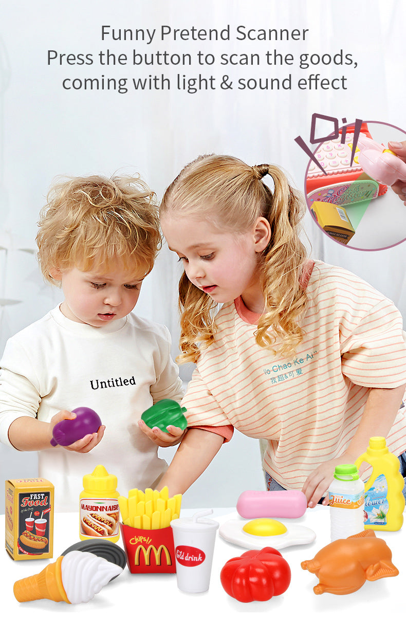 2.Funny Pretend Scanner, Press the button to scan the goods,coming with light sound effect.